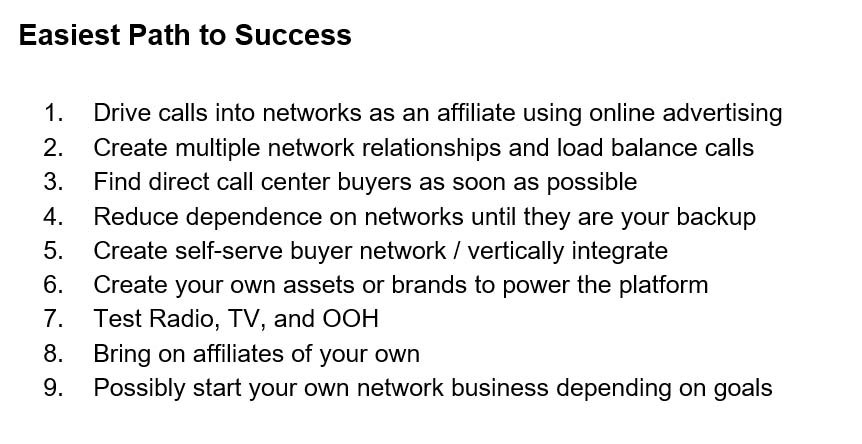 First and foremost, whenever I have moved into any industry, I start as an affiliate so that I can understand how that industry operates. My suggestion is if you’re new to Pay Per Call, to begin by driving falls into networks as an affiliate using online advertising. That’s going to be your most comfortable and fastest route to potential success.